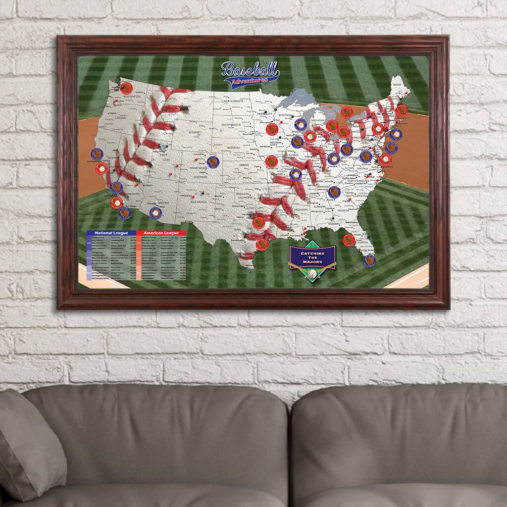 Baseball Stadium Adventures Map with Pins | MLB Travel Map Push